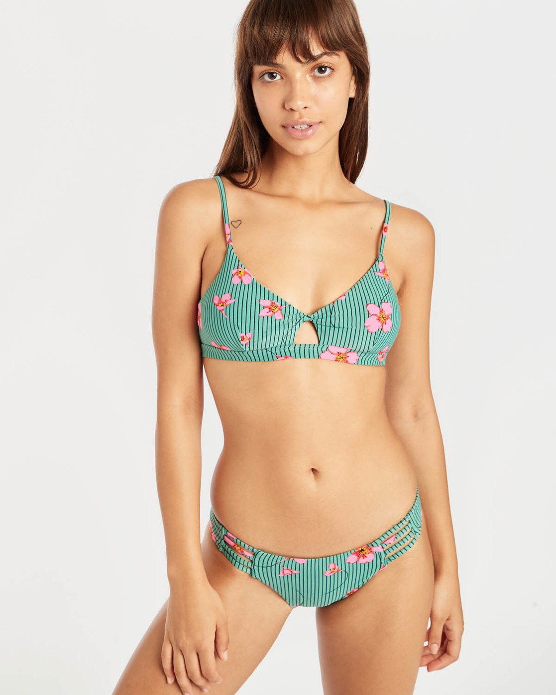 A print for the wildflower at heart. Set adrift florals and seagrass lines are featured on the Seain Green Twist. Building on a bralette bikini top, the front features a twisted detail and small keyhole.