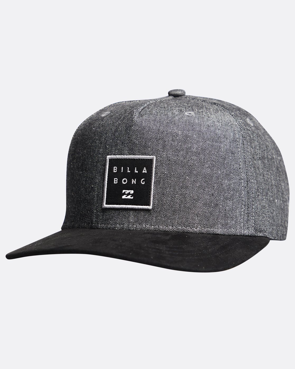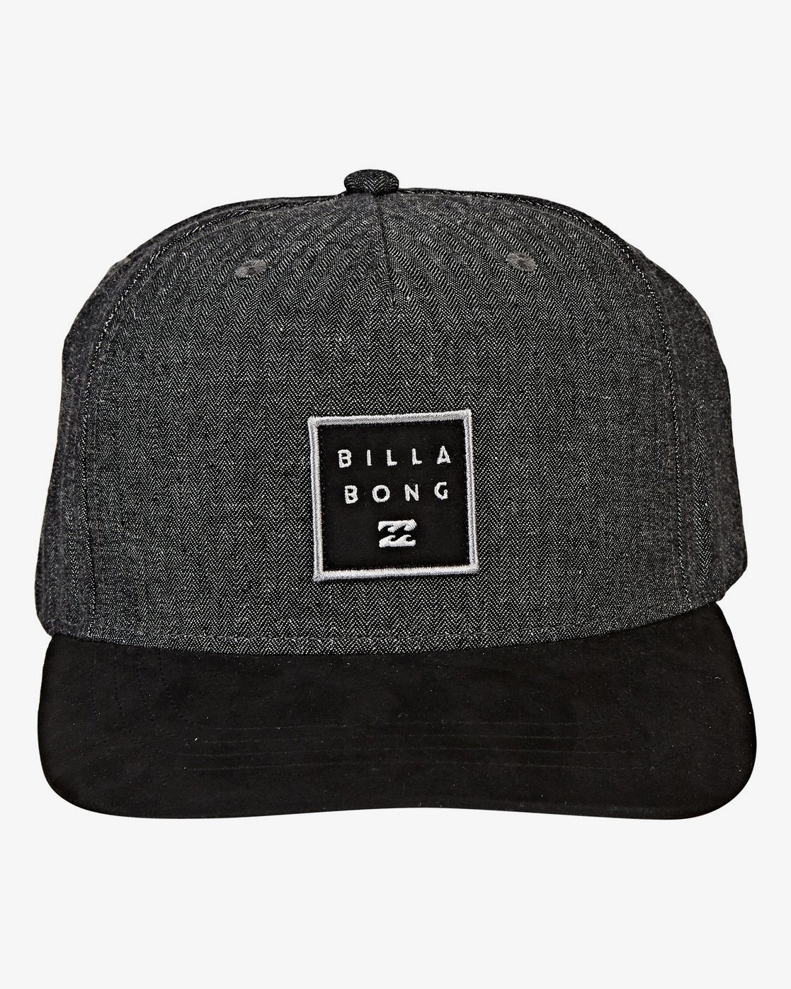- Faux leather and suede patch detail on front crown