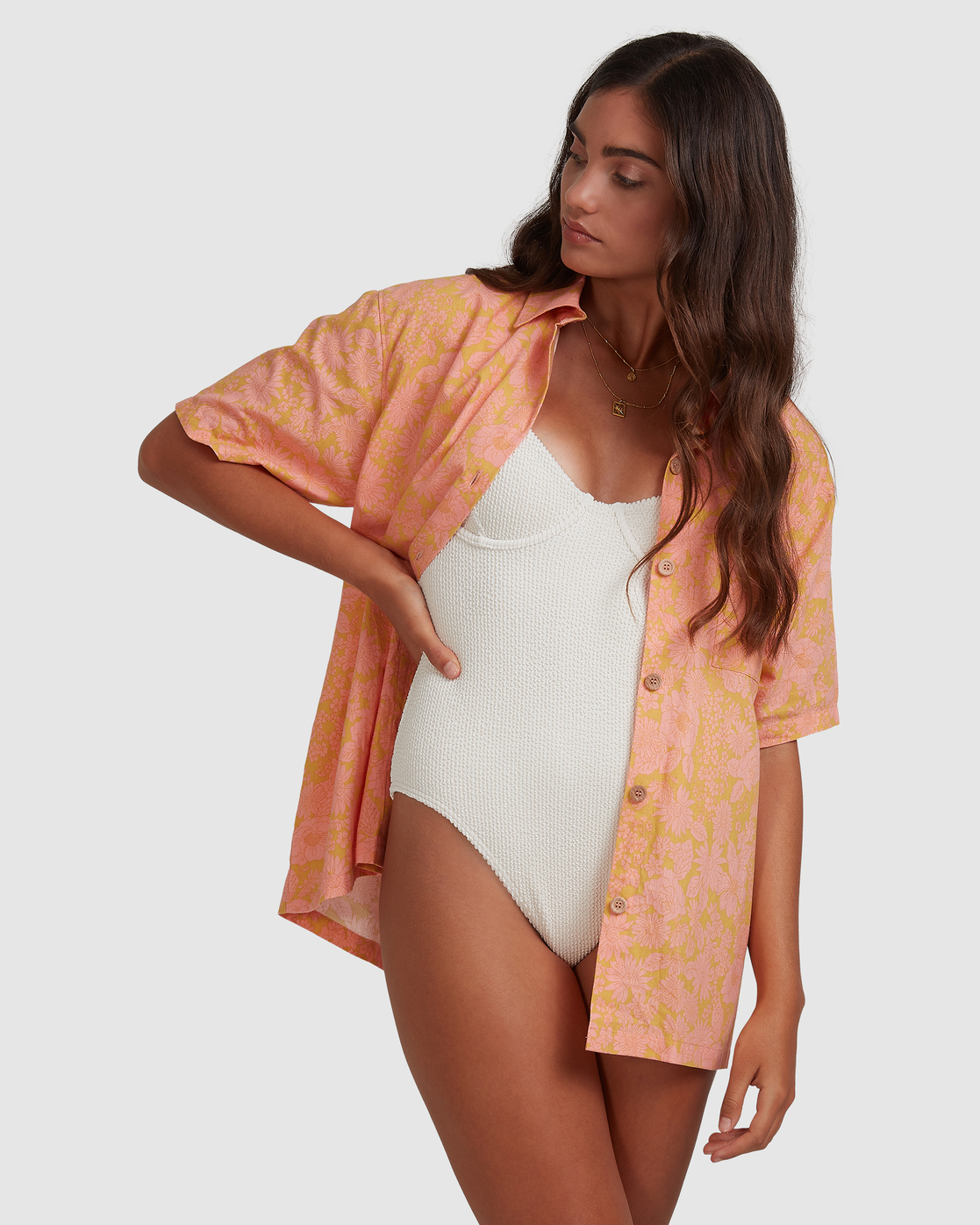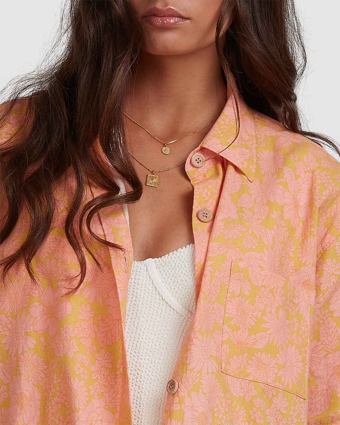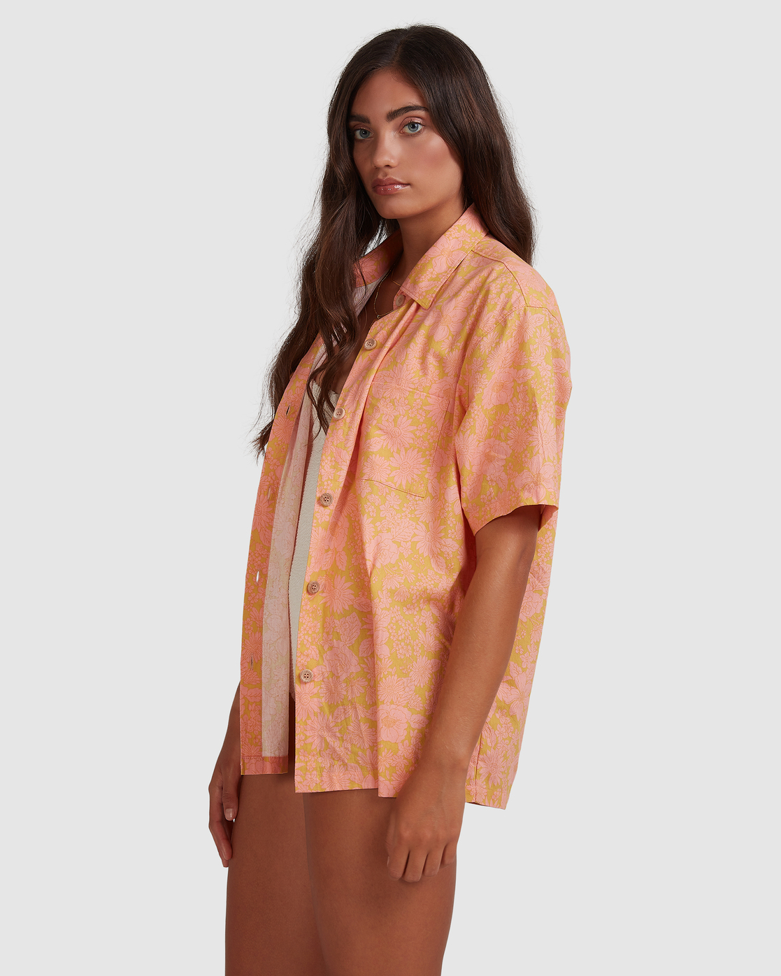 Summer Sun Button Thru - Oversized Short Sleeve Shirt for Women